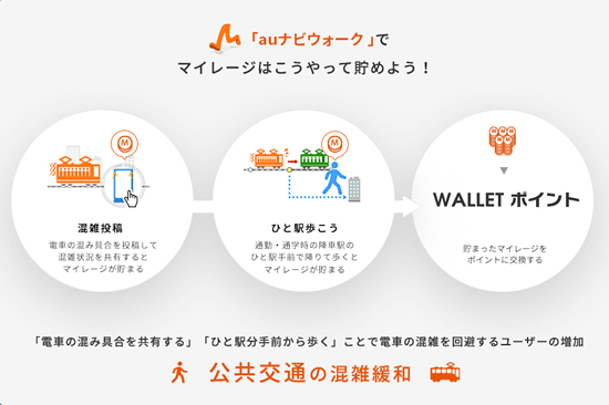 「auナビウォーク」などに、「WALLETポイント」が貯められる新機能を追加