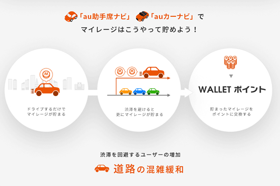 「au助手席ナビ」「auカーナビ」でのマイレージの貯め方