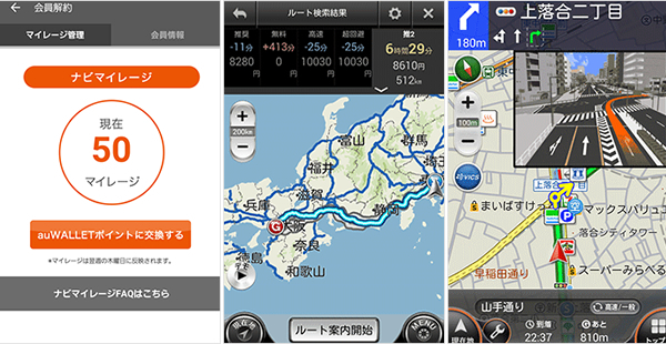 KDDIと沖縄セルラーは、7月13日、ナビサービス「auナビウォーク」「au助手席ナビ」「auカーナビ」に、「WALLETポイント」を貯めることができる新機能を追加した。