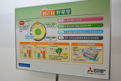 3色の光で野菜の栄養素を増やす「朝どれ野菜室」のLED照射