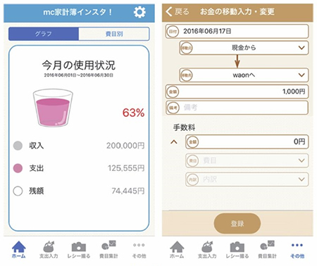 「マムクラウド家計簿インスタ!」の画面イメージ(iOS版)