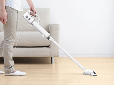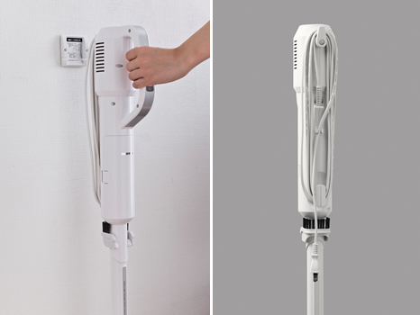 コードレスではなく有線なので、使用時間に制限はなく、本体とヘッドをつなげばハンディタイプとして、本体先端部分を回転させるとブラシタイプとして使用できる。ダストパックには、抗菌加工をほどこした不織布を使用し、排気のニオイを抑えた。