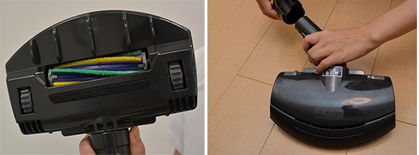 エアブロー機能は、三菱独自のサイクロン技術で実現したキレイな排気を利用する。ただ、家具の裏などに使うと、部屋の中をほこりが舞うことになる。それを許せるかは賛否両論だろう。
