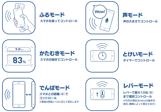 専用のスマートフォンアプリをインストールしたスマートフォンを振ったり、傾けたりすることで出力をコントロールでき、声の大きさやタイマー、スマートフォンとの距離など多彩な方法でのコントロールに対応する。