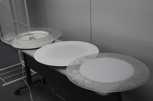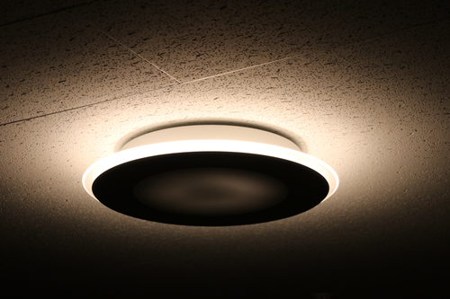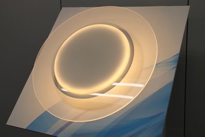 独自構造のLED発光部と導光クリアパネルの二つの発光部を搭載し、それぞれの点灯と消灯の組み合わせによって多彩な配光切り替えを実現した。デザインバリエーションは3種類。スタンダードモデルは、上下左右に光が広がり、部屋が広く感じられるように設計。点灯してから照らし方をリモコンで調節すると、パネルが宙に浮いているように見える。消灯時はインテリアに溶け込むようデザインした。