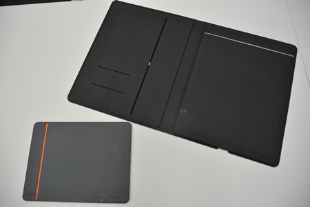 名刺や書類を入れるポケットがついたカバー付きの「Folio」は、従来機種と同じA4サイズ。クリップボードのような形状で薄型の「Slate」は、A5サイズの「small」とA4サイズの「large」の2サイズをラインアップする。