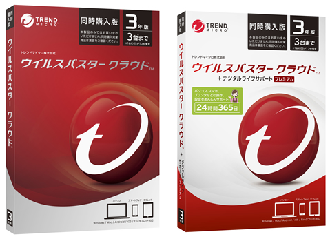 左から、ウイルスバスター クラウド、ウイルスバスター クラウド+ デジタルライフサポート プレミアム