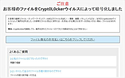 ランサムウェア「CryptoLocker」の身代金要求メッセージ