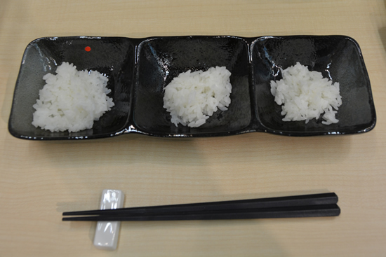 銘柄に合わせて炊きわけができる。左からこしひかり、つや姫、ゆめぴりか