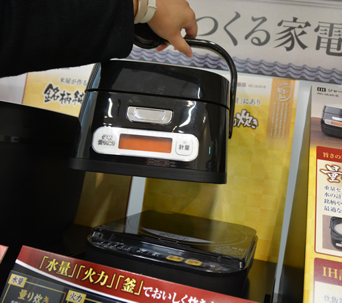 新製品の「銘柄量り炊きIHジャー炊飯器 3合」は、「量り炊き」モードに設定することで釜に入れた米の量に対して必要な水量を自動で計算し、最適な水量の基準値との差異が5cc以下になるよう液晶画面と音でガイドするので、米の計量が正確でない場合や、合数単位以外の場合でも最適な水量で炊飯できる。
