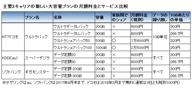 スマホの料金プラン競争再び、ヘビーユーザー向け大容量プランのGB単価が安く