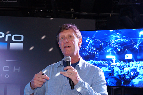 まず発表会に登壇したJeff Brownシニア・バイスプレジデントはGoProの歴史について「2002年にCEOのニコラス・ウッドマンがアメリカで創業し、今年で14年目を迎える。2014年までアメリカ中心の展開だったが、2015年以降は米国以外に販売拠点を設け、欧州、アジア、南米で販売を開始した。アクションカム市場は成長著しく、人材の投資も進め、アジアでの展開を広げていきたい」と日本を含めたアジア展開について言及した。