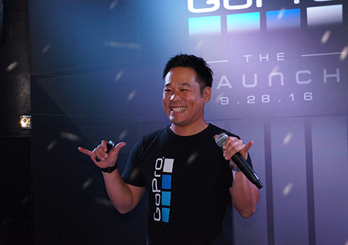 続いて登壇したGoPro JapanのSoo Hun Lee氏は「GoPro HERO5 BLACK」の特徴について説明。「日本語のユーザビリティを向上させ、声で撮影を操作するボイスコントロールを可能とした。水深10mまで潜っても問題無く操作でき、充電するだけで撮影した動画や写真をクラウドへ自動的にアップロードを行う」と語る。