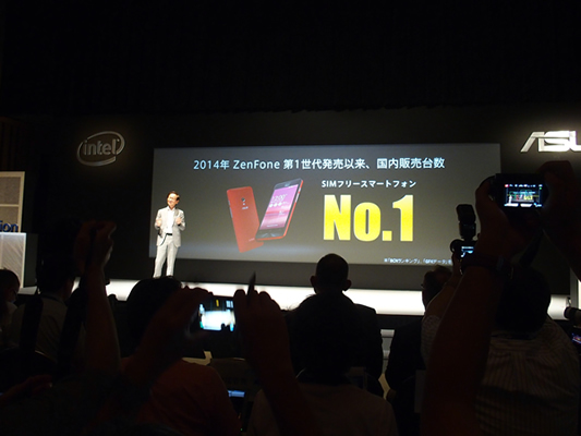 冒頭に登壇したASUSのジョニー・シー会長は、日本市場で「SIMフリースマホ」「Android タブレット」「Windows 2in1タブレット」などで販売台数がNo.1であるとアピールしながら「Zenシリーズがさらに進化した」と語った。