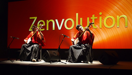 Zenシリーズの進化と音の良さをアピールするため、津軽三味線奏者、吉田兄弟によるパフォーマンスも披露された