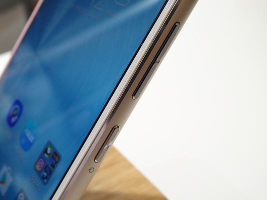 電源スイッチとボリュームボタンはスマホで一般的に右側面に配置した(「ZenFone 3」)