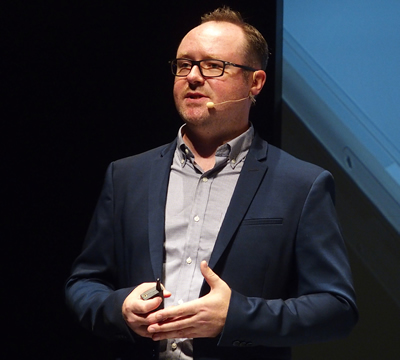 新製品の説明で登壇したASUSのエリック・ハーマソン モバイルマーケティング長は、「とてもプレミアムな製品。パワーキーとボリュームキーを側面に移動し、持ちやすくした。カメラも優れており、最高の写真をどこでも撮りたいというニーズに応えられる。複数軸の光学手振れ補正を搭載したのも画質の向上に役立っている。ローライトモードではフラッシュなしで暗いところでも撮影でき、プロのような写真が楽しめる。日本初のマルチキャリア、デュアルSIM、デュアルスタンバイを搭載しより便利になった」と特徴を説明した。