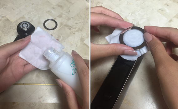 コットンにたっぷり化粧水を付けて、ストッパーで装着