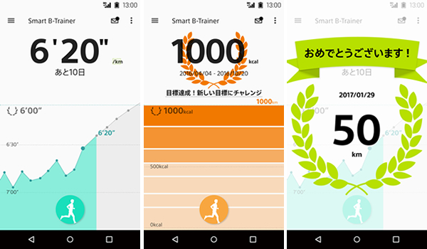 スマートスポーツギア「Smart B-Trainer」には、2017年2月に、従来のランニングメニューに加え、新たに筋力トレーニングやストレッチなどフィットネスメニューを追加する。それに先立ち、11月上旬に専用アプリのデザインをリニューアルし、走行距離や減量などの目標数値を設定できる機能や、トレーニング中に音声でユーザーのモチベーションを喚起する機能を追加する。