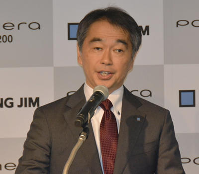 キングジム常務取締役の亀田登信開発本部長はあいさつで「ポメラは2008年に誕生し、累積販売台数は30万台を突破した」と説明。新製品の「DM200」については「テキスト入力に特化した端末というコンセプトを継承し、入力のしやすさにさらに磨きをかけた完成度の高い商品だと自負している」と紹介した。