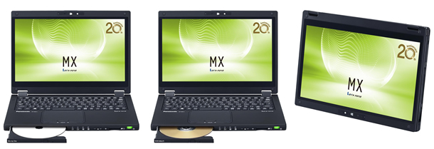 「MX5シリーズ」は、タッチパネル対応12.5インチワイド液晶ディスプレイ(解像度1920×1080)を搭載する。バッテリ駆動時間は約12時間。サイズは幅301.4×高さ21.0×奥行き210.0mm。