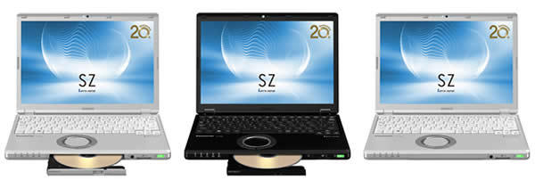 「SZ6シリーズ」は、12.1インチワイド・アンチグレア液晶ディスプレイ(解像度1920×1200)を搭載。軽量約849g、バッテリ駆動時間約14.5時間のドライブレスモデル「CF-SZ6EDYPR」をはじめ、CPUやストレージ容量、光学ドライブの異なる5モデルをラインアップする。バッテリ駆動時間は、モデルによって異なり、最長約22時間。サイズは幅283.5×高さ25.3×奥行き203.8mm。