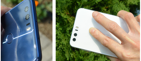 背面は、指紋認証センサだけ。ダブルレンズの部分は突起がなく、全面フラットだ
