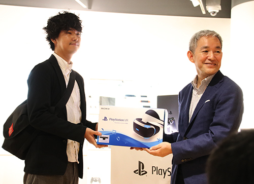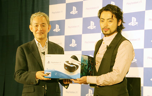 最初の購入者に盛田厚プレジデントがPSVRを手渡した
