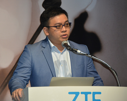 あいさつするZTEのハーバード・チャンマーケティングディレクター