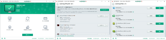 「カスペルスキー インターネット セキュリティ」は、PCにインストールしたソフトウェアの更新状況を自動でチェックして、必要なアップデートが見つかった場合はただちに更新を促すとともに、自動でのソフトウェアのインストールも可能な「ソフトウェアアップデーター」や、意図せずインストールしたソフトウェアや長期間使用していないソフトウェアを一覧表示して削除できる「ソフトウェアクリーナー」を新たに搭載した。