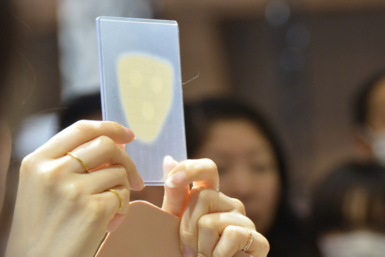 非接触肌センサーと同社の保持する有機ELに関する印刷技術を応用し、一人ひとりにぴったりのシミを隠せるナノレベルの極薄の「メイクアップシート」を作り出す。