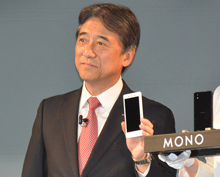 「MONO」は、4.7インチの液晶ディスプレイや約1300万画素の広角カメラを搭載し、キャップレス防水に対応するほか、画面を見ずにマナーモードの切り替えができる専用スイッチなどの便利な機能も設けた。