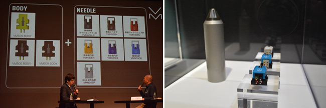 カートリッジの新製品は、7種類の針と3種類のボディの組み合わせからなる9機種とヘッドシェルモデル3機種の計12機種。カートリッジを取り替えることで、多彩な音の変化を楽しんでほしいという願いから、異例のラインアップ数となった。カートリッジはデュアルムービングマグネットを採用するVM型で、音がしっかり分離しているのが特徴だ。今回、コイルを根本から見直すことで、高い解像度と中低域のボリューム向上を両立させた。