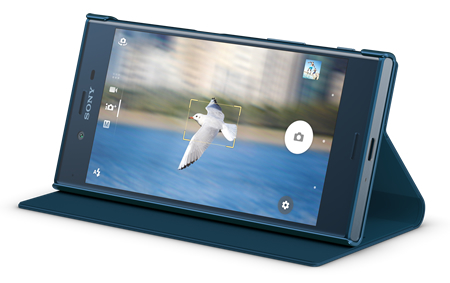 角度調整が可能なスタンド機能付きフリップカバー(Xperia XZ専用「SCSF10」のフォレストブルー)