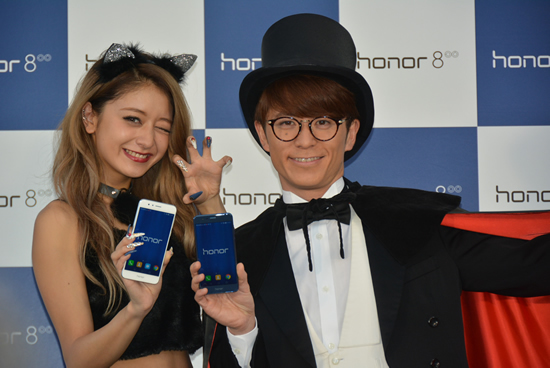 ファーウェイ・ジャパンは10月26日、SIMロックフリースマートフォン「honor 8」にちなんだハロウィンイベントを開催し、オープニングイベントとして、オリエンタルラジオの藤森慎吾さんと、「みちょぱ」の愛称で知られるモデルの池田美優さんが、「honor 8」を使って撮影対決した。