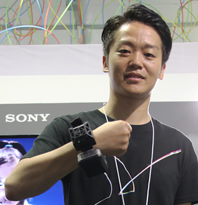 端末を手首に装着したソニーの若手エンジニア、キム・ヒスン氏