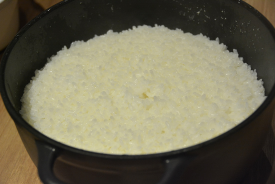 炊きあがったごはんには、おいしさを示す「カニ穴」と呼ばれる空洞ができた