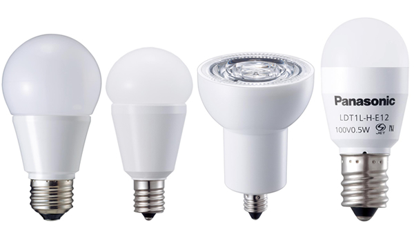 左から一般電球タイプ(E26口金)、小形電球タイプ(E17口金)、