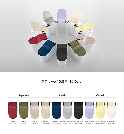 全自動おそうじトイレ「アラウーノ」10周年記念、全10色のトップカバー