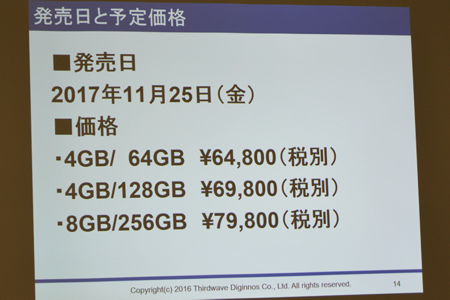 CPUには最新のSkylake世代のCore m3-6Y30を採用する。税別価格は、4GBのメモリと64GBのSSDを搭載した「Diginnos DGM-S12Y-4064」が6万4800円、4GBのメモリと128GBのSSDを搭載した「Diginnos DGM-S12Y-4128」が6万9800円、8GBのメモリと256GBのSSDを搭載した「Diginnos DGM-S12Y-8256」が7万9800円。