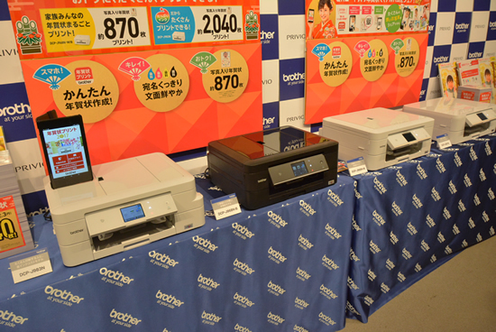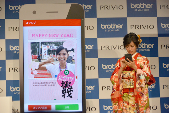 「PRIVIO」は、スマホアプリ「Brother 年賀状プリント」の機能を強化したのが特徴。QRコード付きの年賀状を作れるようになったほか、テンプレートのデザインを増やしたり、横書きの宛名に対応したりした。