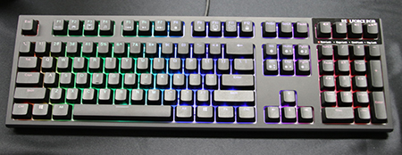 キー配列は英語で、キー数は特殊なキー4つを含んだ108キー。キーキャップは2色形成で、バックライトは1680万色。なお、2017年春に、今回の英語配列モデルに加え、日本語配列モデルを発売する予定