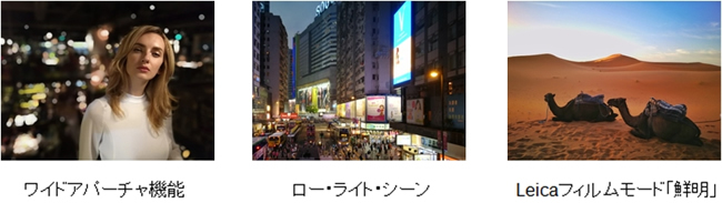 (左から、ワイドアパーチャ機能、ロー・ライト・シーン、Leicaフィルムモード「鮮明」の例)
