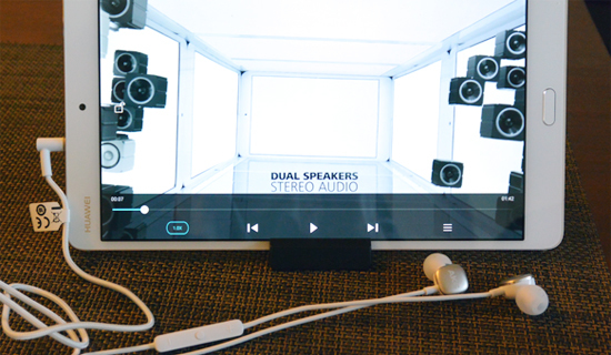 Androidタブレットのハイエンドモデルは、各社とも、画質と音質の強化に力を入れている。自宅用にはWi-Fiモデル、スマホ代わりや、ストリーミング配信の動画再生など、用途に特化したサブ端末にはLTE対応モデルがおすすめだ。2015年9月発売の8インチタブレット「MediaPad M2 8.0」を強化した「MediaPad M3」は、解像度2560×1600、広色域85%、コントラスト比1500:1のIPS液晶ディスプレイ、コントラストと鮮明さを改善し、目で見たままに鮮やかに表示する独自の画像最適化技術「ClariVu- Super Resolution」、世界有数のオーディオ企業・harman/kardonとコラボレーションしたステレオスピーカー、5100mAhの大容量バッテリ、高速・高感度の指紋認証センサなどを搭載。Hi-Fi Audioを搭載したWQXGAタブレットであり、CDの約6倍、レコーディングスタジオ水準の192Khz/24-bitのサンプルレートを実現し、「究極の音」を楽しめるという。