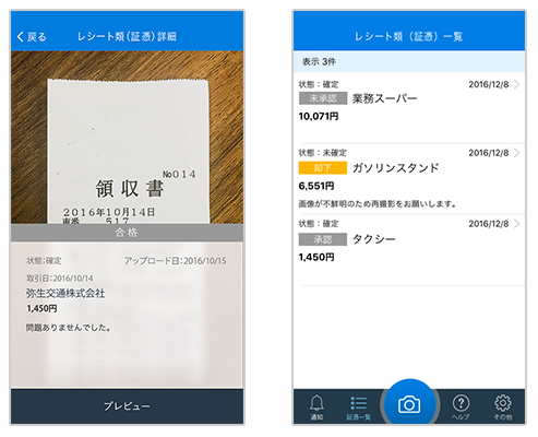 無料アプリ「弥生 レシート取込」の画面イメージ