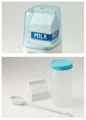 付属の発酵容器ではなく、本体にパック牛乳をそのままセットして作ることも可能。また、発酵容器、発酵容器ふた、キャップ、スプーンは熱湯消毒できる。サイズは幅約11.5×奥行14.9×高さ26.5cm。カラーはクリアブルー。