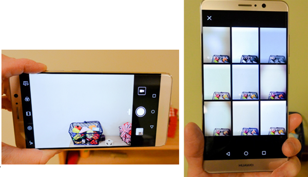 「Mate 9」は5.9インチの大画面。カラーフィルターの効果の違いもわかりやすい