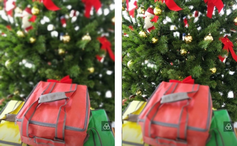 (編集画面で、左は手前のバックに、右は奥のクリスマスツリーにフォーカスを当てた状態)