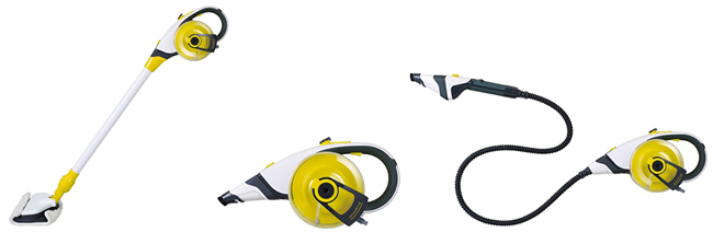 スチームの噴射量は無段階調整で、用途に応じて、手元で細かい調節が可能。また、電源をオンにしてから約10秒で高温スチームを噴射可能なので、タンクへの給水のために電源をオフにしても、給水後ただちに再使用できる。なお、安全性に配慮し、本体にノズルを装着していない場合はスチームを噴射できない。モップ式、ハンディ式、ホース式の3種類のノズルと、付属品をまとめて収納可能な専用の収納袋が付属する。