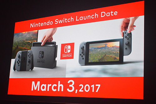 任天堂は1月13日、東京ビックサイトで、新しい家庭用ゲーム機「Nintendo Switch(ニンテンドースイッチ)」を発表した。税別価格は2万9980円で、3月3日に発売する。